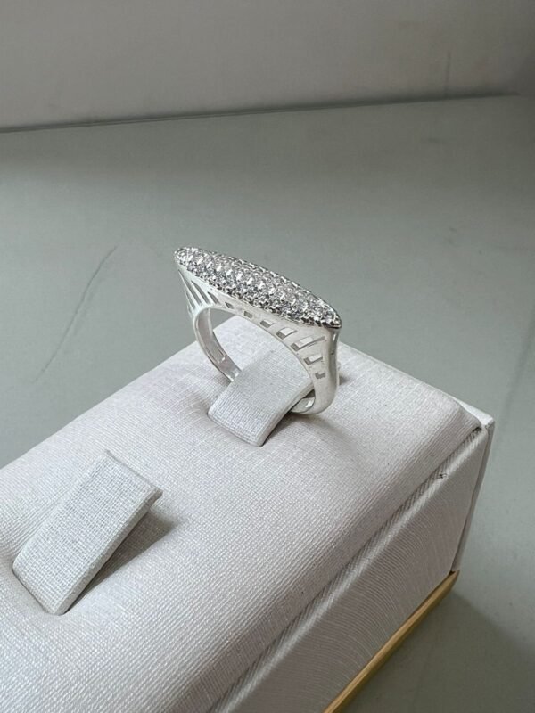 Anel em prata 925 com design moderno e sofisticado, destacando um topo quadrado totalmente cravejado com 3 fileiras de zircônias brilhantes. Uma peça que combina elegância e estilo contemporâneo, ideal para quem busca um acessório luxuoso e marcante.