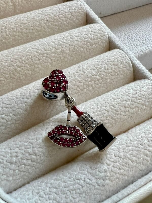 Berloque Baton Coracao Cravejado Rosa