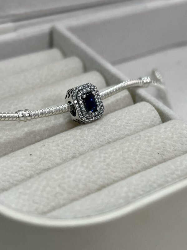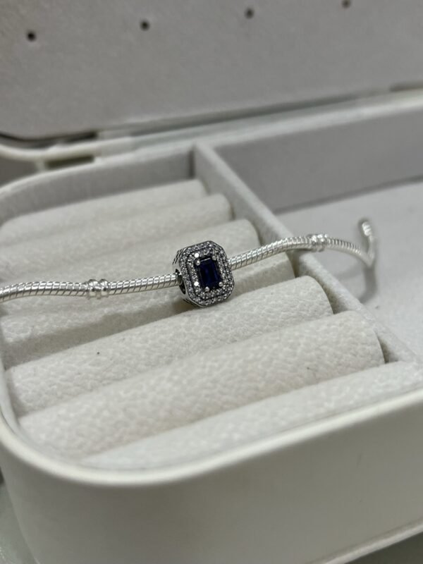 Feito em Prata de Lei, este berloque combina uma pedra central azul marinho e várias zirconias ao redor , trazendo sofisticação e brilho à sua pulseira.